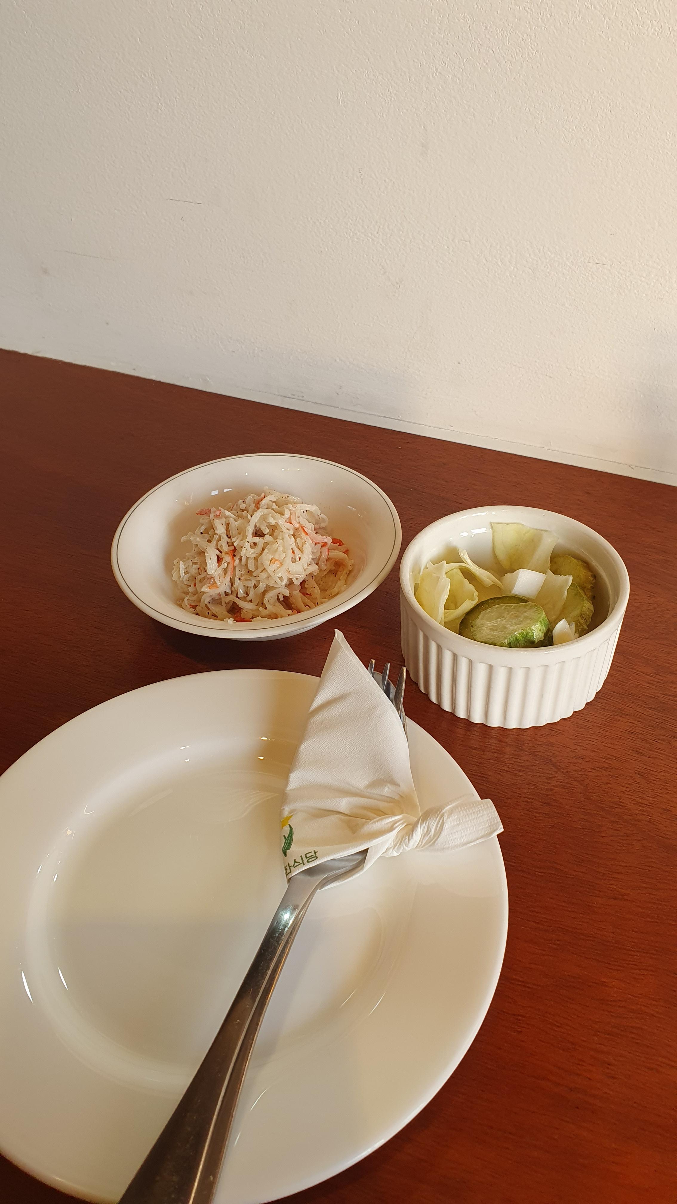 같이 나온 샐러드랑 피클이 생각보다 독특해서 맛있었다.