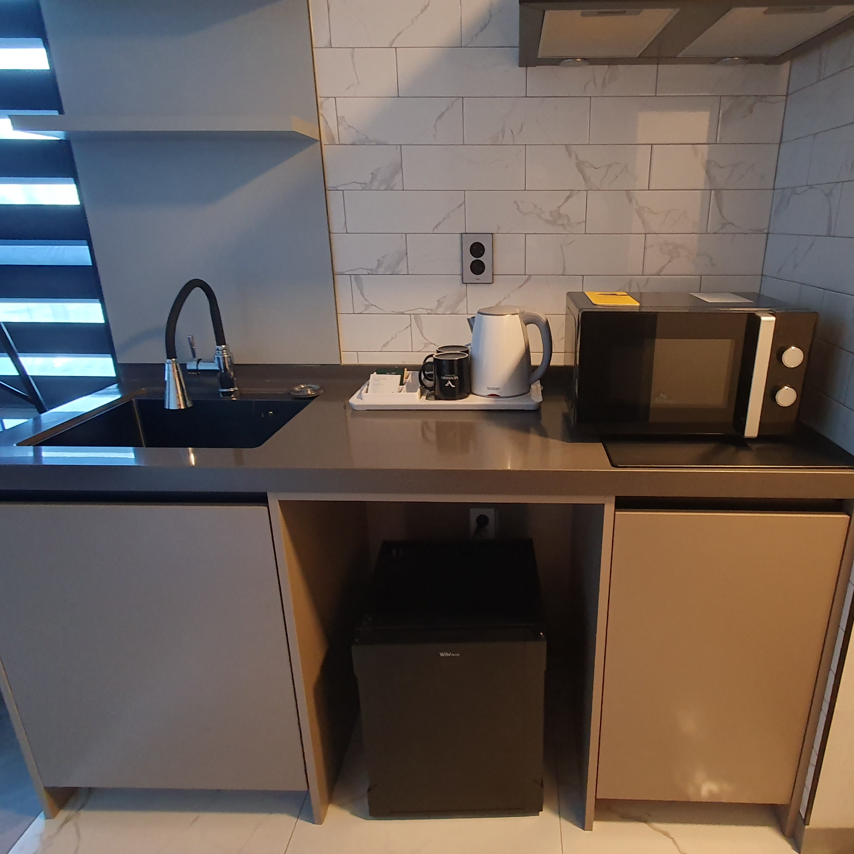 전자레인지랑 개수대가 있었는데 간단한 음식을 데워먹을 수 있어서 좋았다.