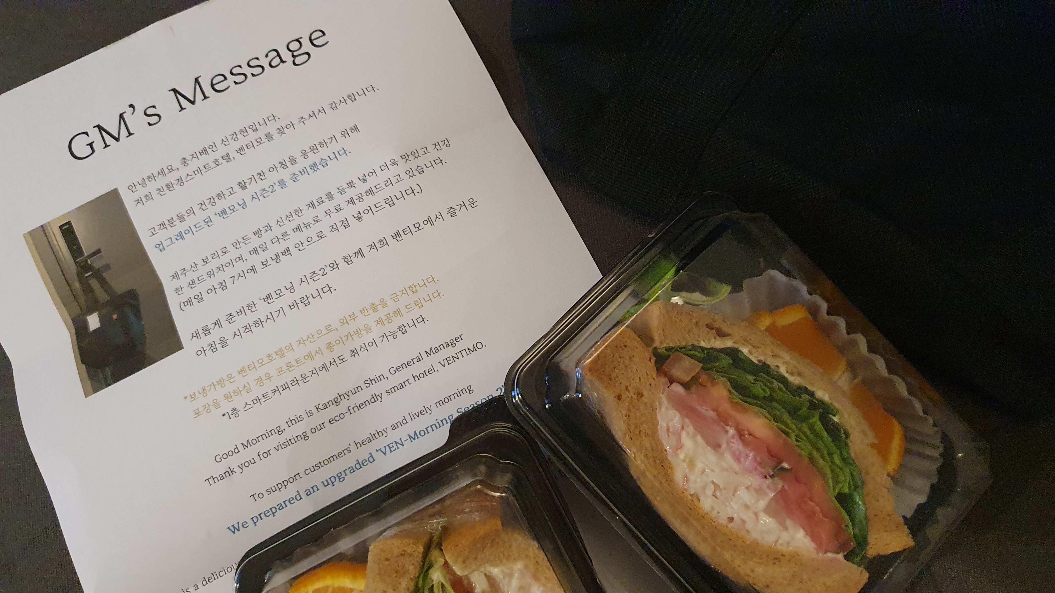 다음날 아침 7시에 샌드위치를 제공받을 수 있다고 적혀있다.