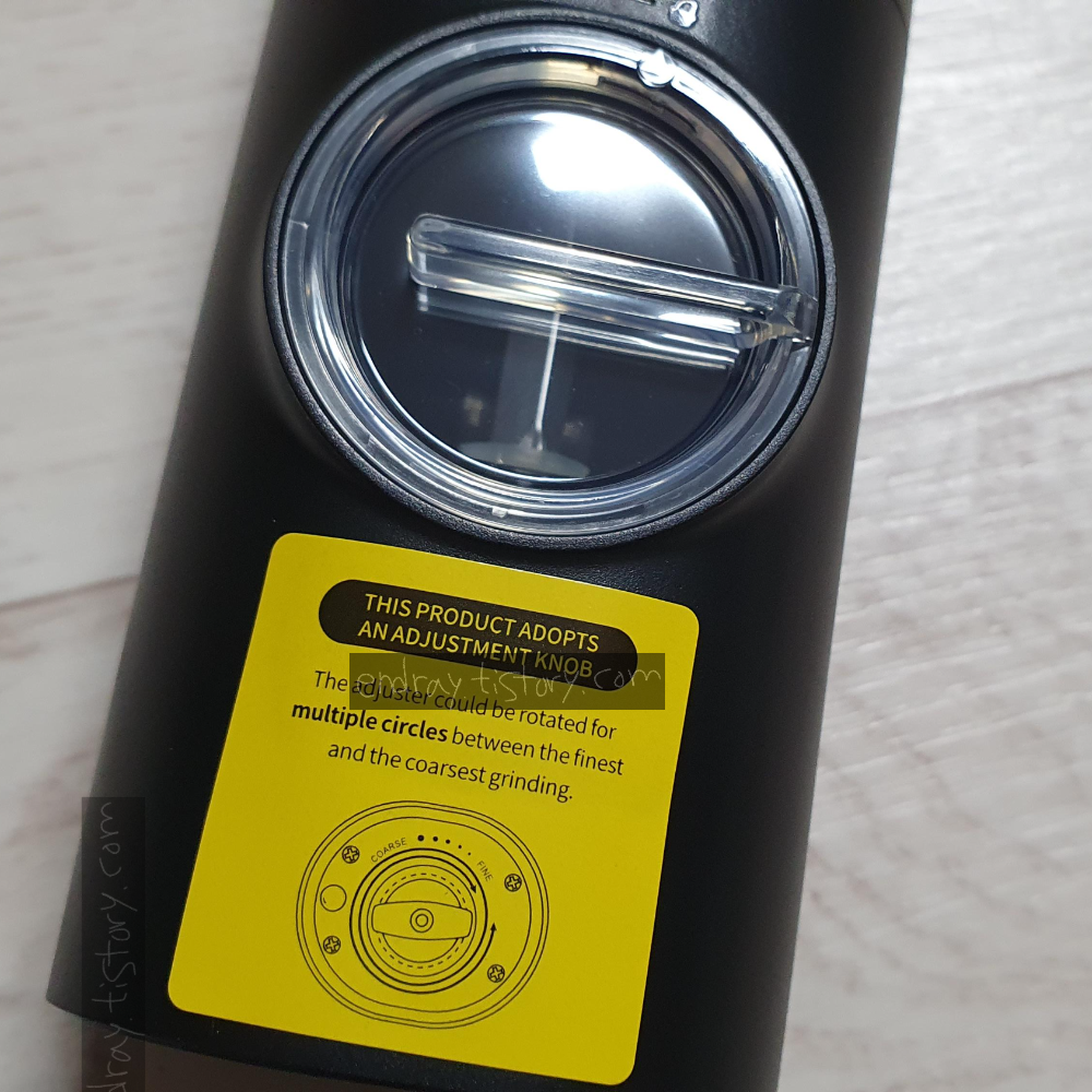 갈려 나오는 쪽에 후추를 곱게 갈거나 거칠게 갈 수 있는 돌림판이 있다.